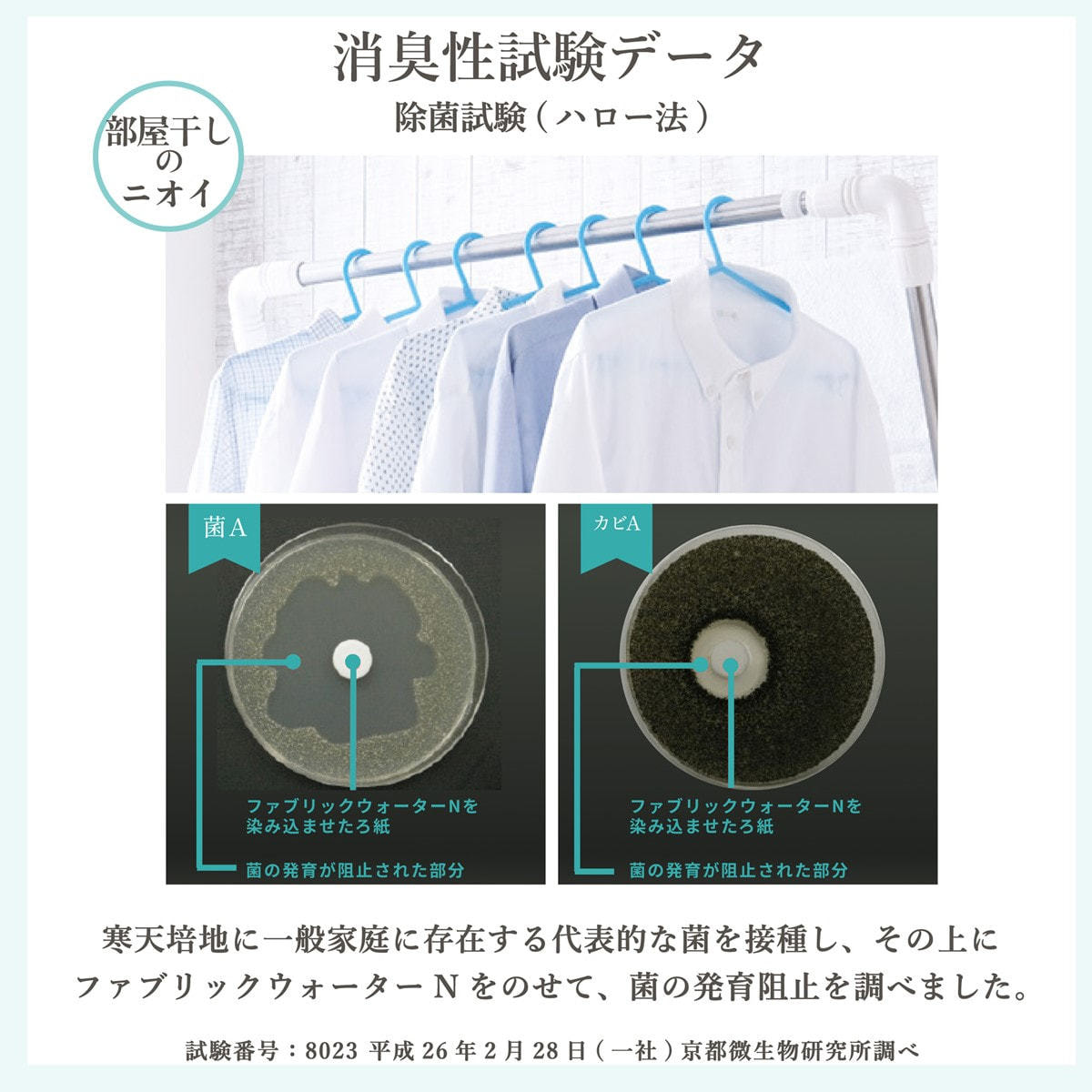 汗や部屋干しのニオイなど様々なニオイの原因に直接働きかけます(消臭・除菌データ取得済)。